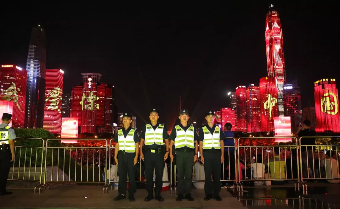 中華人民共和國成立70周年大慶,安保問題成重中之重。10月1日晚,深圳舉行“慶祝新中國70華誕大型焰火晚會”、“國慶節(jié)燈光秀”,福田警隊貢獻福田力量,以“平安”、“有序”獻上最真誠的祝福,在此后的燈光秀安保中,福田警隊更是不遺余力,嚴密落實安全防范措施,有力地確保了市民游客在觀看燈光秀過程中安全、祥和、歡樂的觀感體驗。