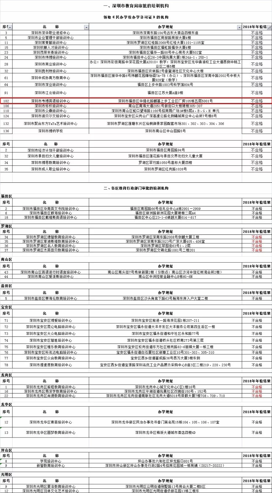 分別是位于羅湖遠(yuǎn)東大酒店的深華職業(yè)進(jìn)修中心、羅湖紅桂大廈的深圳市常青藤培訓(xùn)中心、市科學(xué)館的深業(yè)培訓(xùn)中心、翠竹路的博思教育培訓(xùn)中心,這些培訓(xùn)機(jī)構(gòu)也都早已無影無蹤。