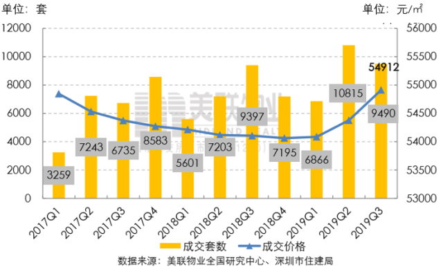 2019年第三季度二手住宅市場延續(xù)第二季度成交熱度,共備案20852套二手住宅,再創(chuàng)三年來季度成交量新高,較今年第二季度上升0.6%,同比去年第三季度上升8.9%;總成交面積約173.80萬㎡。美聯(lián)物業(yè)(深圳)藍(lán)籌住宅價格方面,今年第三季度全市二手住宅的成交均價為55655元/㎡,較第二季度上漲0.7%,同比去年第三季度上漲0.1%。
