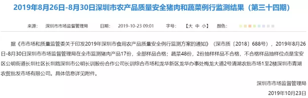 “2019食用農(nóng)產(chǎn)品抽檢第三十四期”