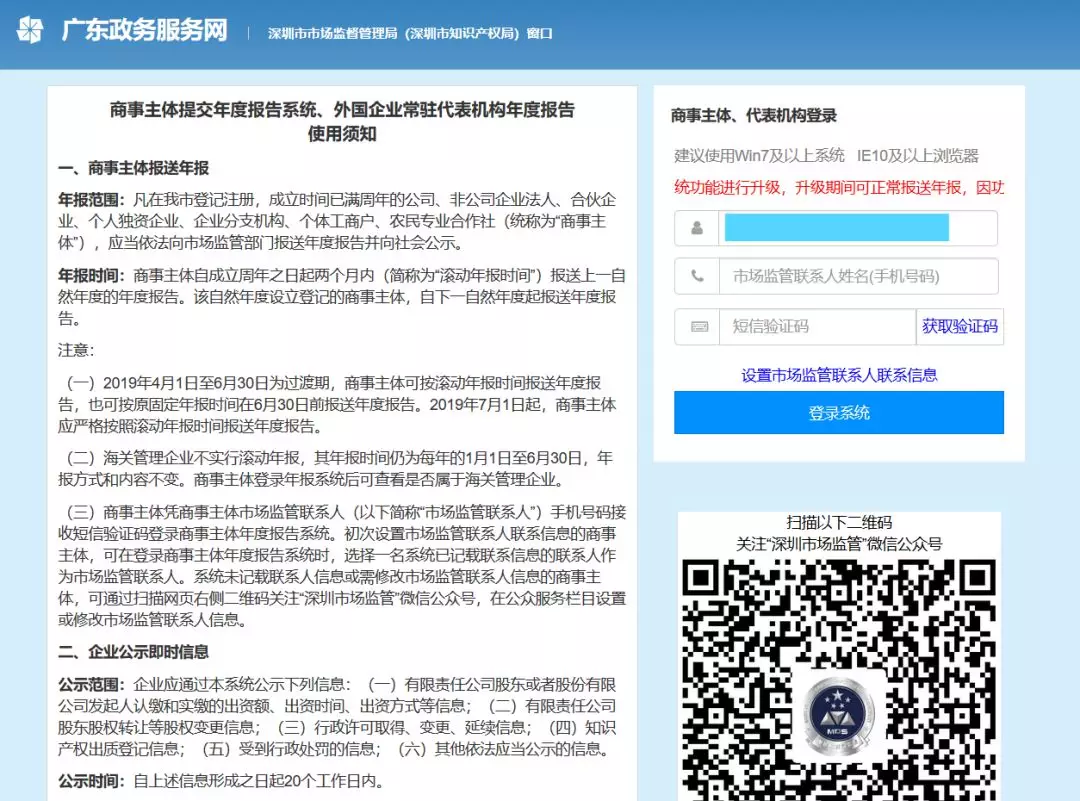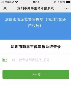 第一步:通過掃描新版營(yíng)業(yè)執(zhí)照二維碼或進(jìn)入深圳市場(chǎng)監(jiān)管官微點(diǎn)擊“公眾服務(wù)”欄目下的“商事主體年報(bào)”進(jìn)入手機(jī)年報(bào)登錄界面。