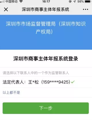 第三步:彈出備選的市場(chǎng)監(jiān)管聯(lián)系人信息,選擇一名,點(diǎn)擊“是(選定聯(lián)系人)”。
