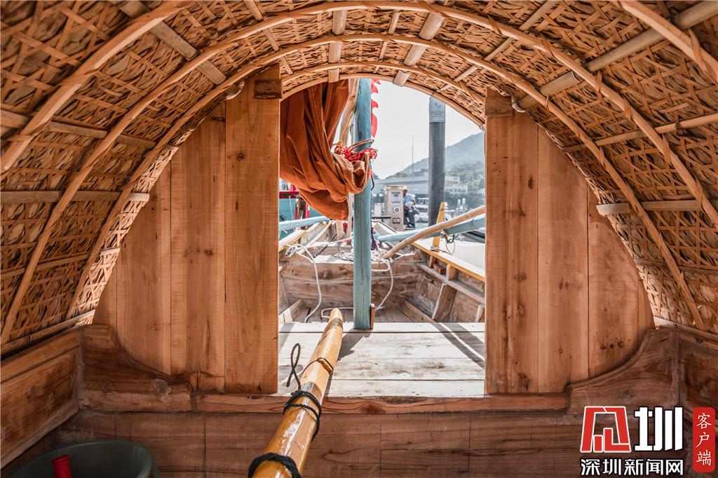 此外,來自遼寧省盤錦市的門錠船“遼河口號”的桅桿上寫著7個字——大將軍八面威風(fēng),分別用赤橙黃綠青藍(lán)紫七色進(jìn)行涂裝,“遼河口號”建造人張興華說道:“船就像大將軍一樣,能掌控八面風(fēng),帶來充足的力量,盼個好兆頭。”建造“遼河口號”的木材都是經(jīng)過精挑細(xì)選的,工藝也得到改善升級,“這艘船我們保留了最古老的傳統(tǒng)技藝,也加入了這三十多年來我們的研究成果,改良水密隔艙技術(shù)、船板黏合劑等,讓木帆船身更安全、更耐用?!边@是張興華第二次復(fù)原門錠船,為了達(dá)到8米左右的尺度要求,他將原有的雙桅改為單桅。來到中國杯帆船賽的現(xiàn)場后,張興華與團隊伙伴已經(jīng)駕駛著“遼河口號”進(jìn)行了巡航,“北方的傳統(tǒng)風(fēng)船能夠到深圳的大亞灣海域來航行,這應(yīng)該是第一次,感覺很不錯!”張興華介紹,在遼寧渤海一帶,還有非常多漁民在使用著木船,但他們也已經(jīng)幾十年沒有見過中國人自己的木帆船了,這次在中國杯賽場上的展示,希望讓更多的中國人看到我們自己的帆船!