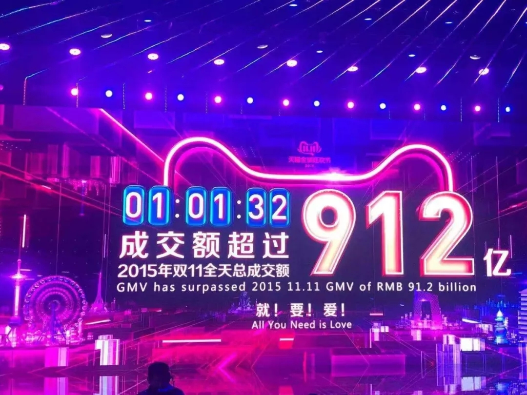 截至11日1小時(shí)01分32秒,天貓雙十一銷售額突破912億元,已經(jīng)超過2015年雙十一全天總成交額!