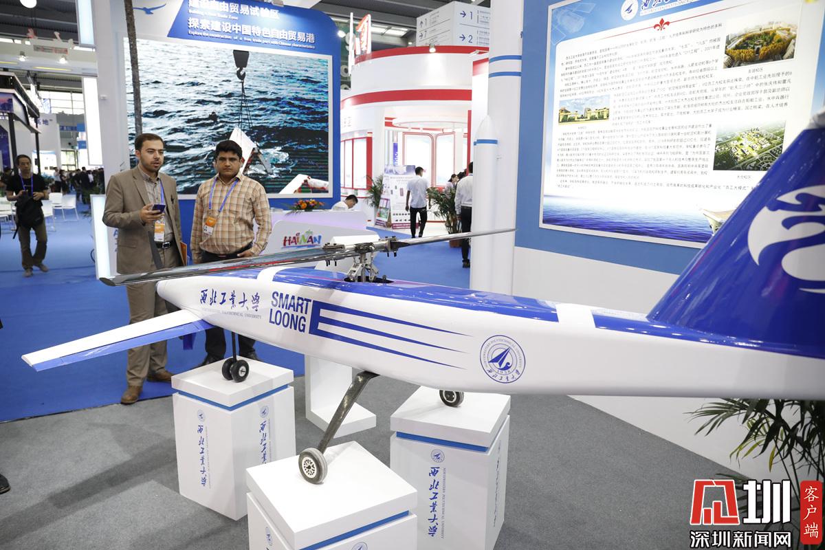 一位展區(qū)工作人員正在操控?zé)o人機(jī)。