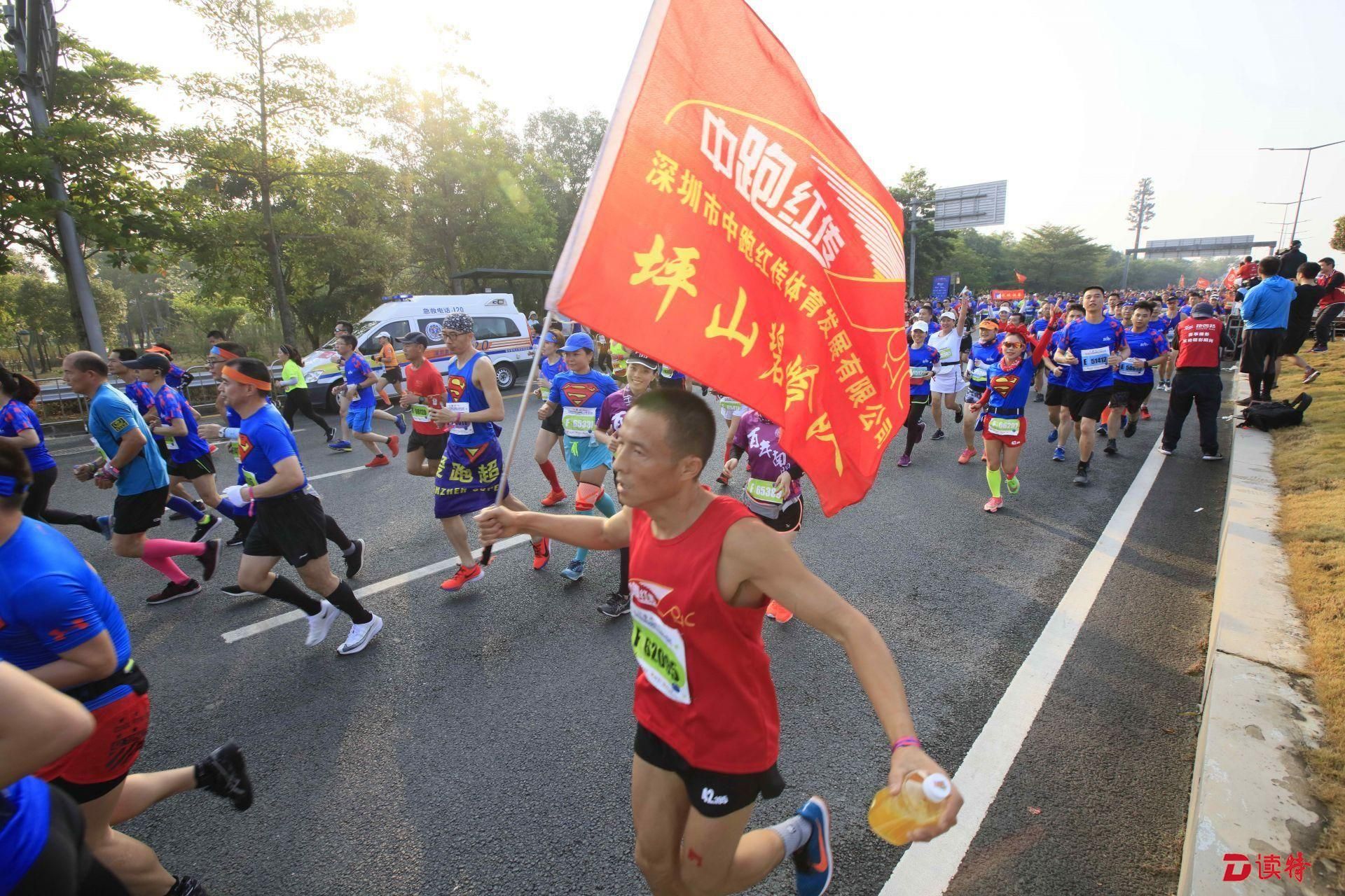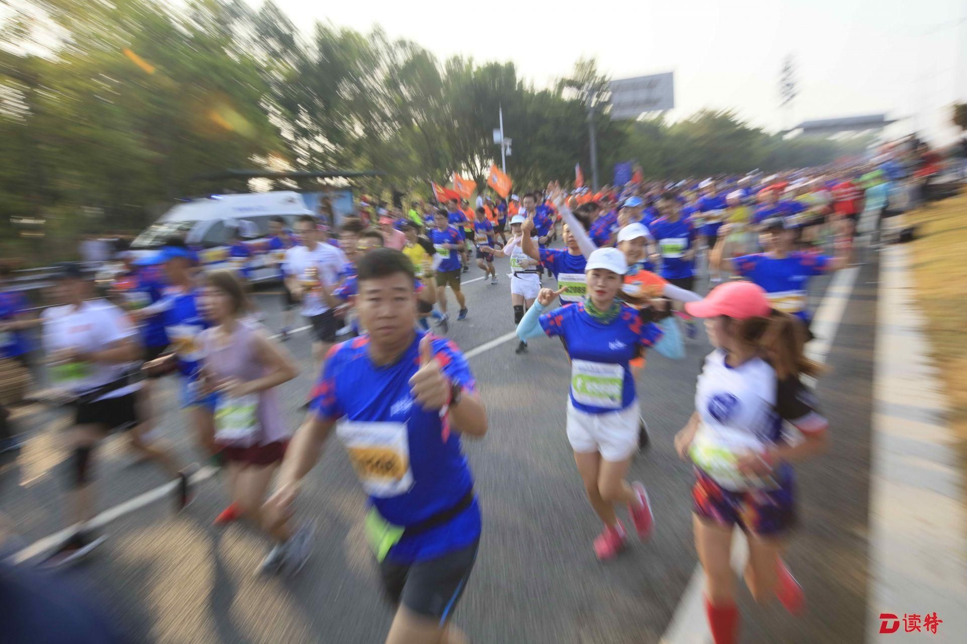 8點鳴槍,1.6萬名參賽選手準(zhǔn)時開跑,由深圳人才公園東門出發(fā),途徑南山區(qū)多個地標(biāo)建筑,向終點華潤深圳灣體育中心奔跑。經(jīng)過一番激烈的角逐,9點過,有選手率先抵達(dá)終點,男女組冠亞季軍陸續(xù)誕生。