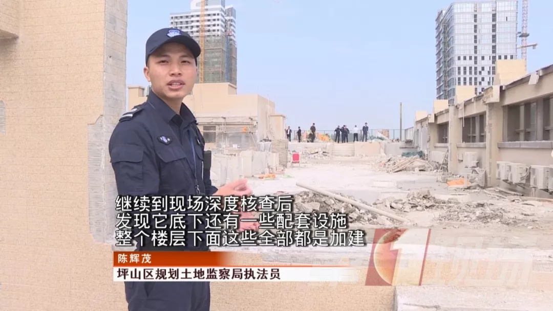原本應(yīng)該是水泥平臺(tái)的樓頂,現(xiàn)在卻顯示為藍(lán)色花紋影像,發(fā)現(xiàn)這個(gè)情況后,坪山區(qū)規(guī)劃土地監(jiān)察局立即組織工作人員進(jìn)行核查。結(jié)果發(fā)現(xiàn),是在樓房經(jīng)過(guò)規(guī)劃驗(yàn)收后,開(kāi)發(fā)商偷偷建設(shè)了一處游泳池。