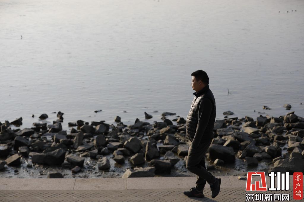 深圳灣公園,一位市民穿著羽絨服出行。