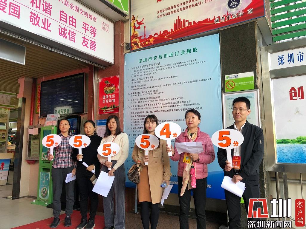 察看完橫崗第一市場(chǎng)后,街坊代表團(tuán)還給該市場(chǎng)的升級(jí)改造結(jié)果進(jìn)行評(píng)分。本次每人打分最高分為5分,現(xiàn)場(chǎng)共有5人打了5分,一人打了4分,共為29分。