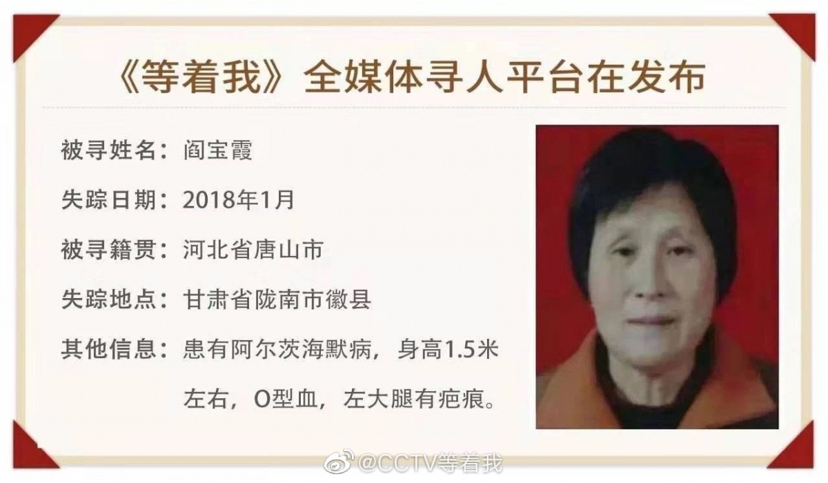閻寶霞卻患上了阿爾茲海默癥,走丟了。