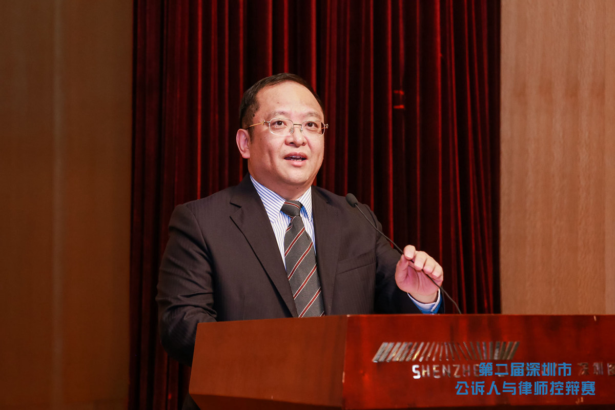 深圳市司法局局長蔣溪林在致辭中表示,今天的控辯大賽是深圳法律人的一個盛會,舉行控辯大賽是為了增進法律職業(yè)共同體的相互了解,特別是在履職過程中,大家能夠站在彼此的立場上,共同為維護法律尊嚴和社會公平正義共同努力。