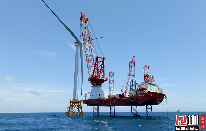 2019年6月27日,中廣核陽江南鵬島海上風(fēng)電首臺風(fēng)機(jī)完成吊裝。