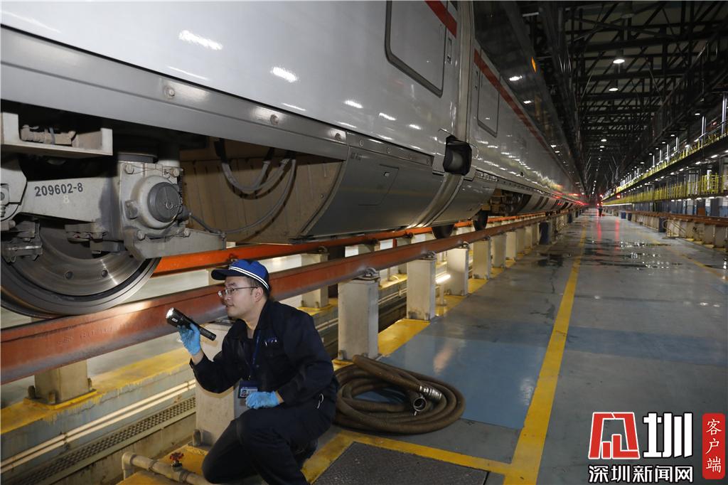 據(jù)悉,深圳動(dòng)車運(yùn)用所平日里主要承擔(dān)著動(dòng)車組的運(yùn)用檢修任務(wù),這里是一列列動(dòng)車的“醫(yī)院”。白天日行千里的列車,深夜都要回到這里“體檢”,確認(rèn)“零故障”后才能繼續(xù)上路運(yùn)行。深圳動(dòng)車運(yùn)用所擁有6條檢車線共12個(gè)列位,每天夜里至次日凌晨是這里最忙碌的時(shí)候,春運(yùn)期間,每晚都會(huì)有二三十輛“下班”動(dòng)車上線待檢,完成一輛動(dòng)車的平均檢修時(shí)間是3個(gè)小時(shí),相較于平時(shí),春運(yùn)期間,深圳動(dòng)車運(yùn)用所檢修工人的工人增加了一倍。