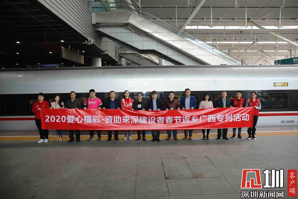 見圳客戶端·深圳新聞網(wǎng)2020年1月18日訊(見圳客戶端、深圳新聞網(wǎng)記者 楊浩翰)1月18日,“2020愛心福彩-資助來深建設(shè)者春節(jié)返鄉(xiāng)廣西專列”在深圳北站發(fā)車。今年是該活動舉辦的第二屆,2300多名在深建設(shè)者通過乘坐該專列返鄉(xiāng)。
