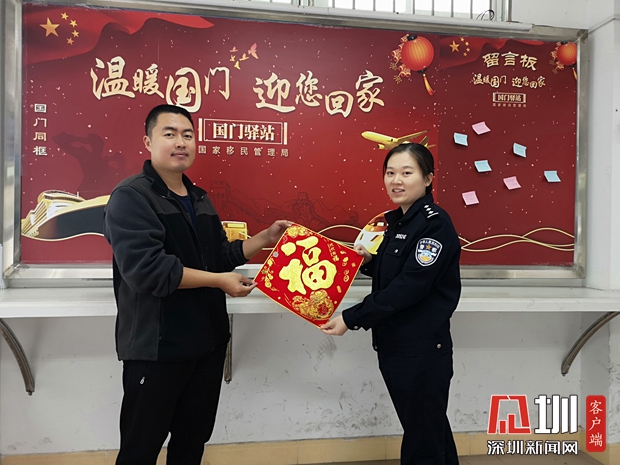 皇崗邊檢站民警為旅客送“福”。
