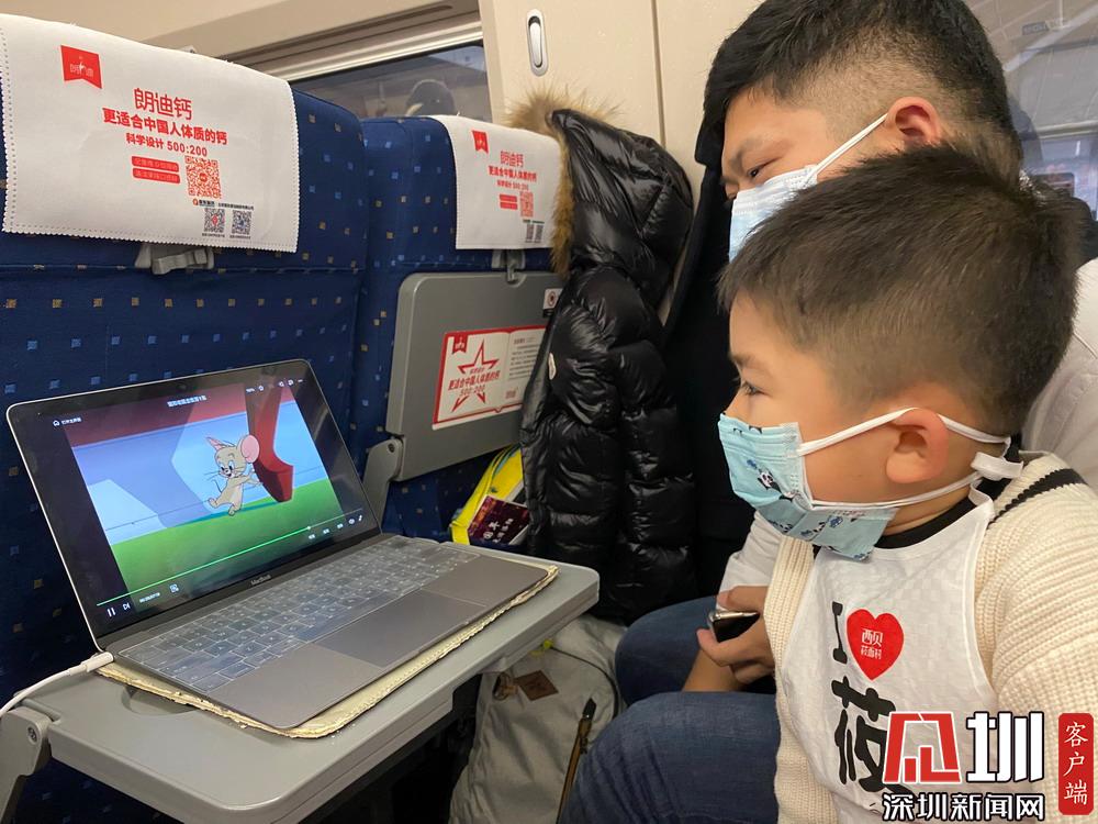 感覺走了好久了,我都覺得有點無聊了,爸爸就給我看<貓和老鼠>,爸爸說,在我們家,媽媽就是那只老鼠,天天氣那只胖貓(爸爸)。見圳客戶端、深圳新聞網(wǎng)記者 劉婷 攝