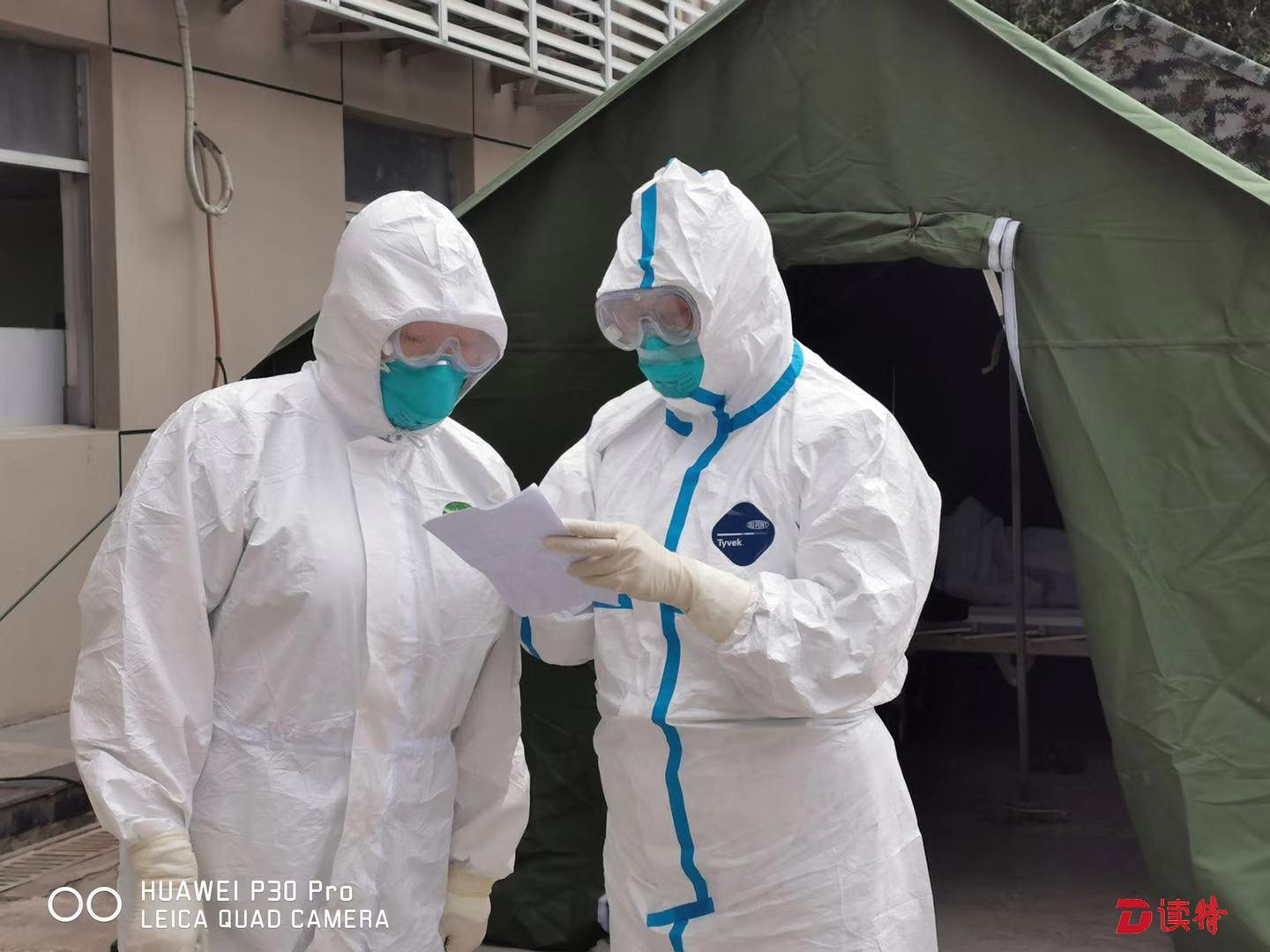 發(fā)熱門(mén)診護(hù)士在隔離觀察區(qū)進(jìn)行病情交接