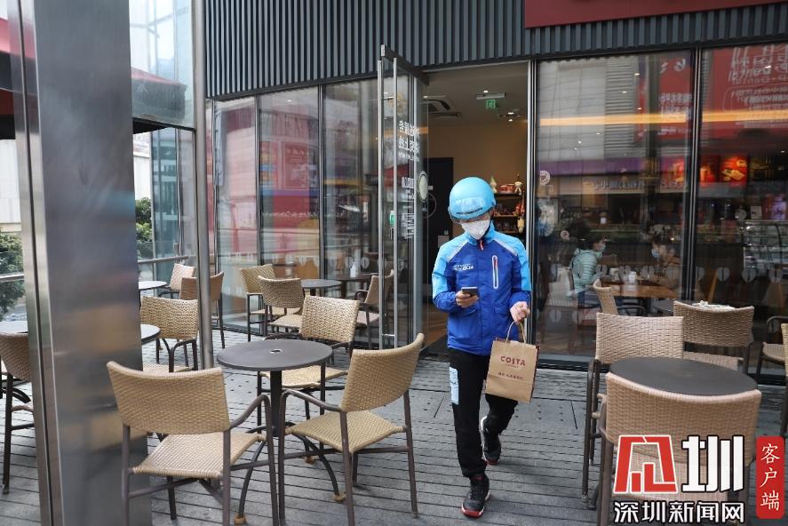 在咖啡店等待商家制作完成,取貨后,王彭輝便馬不停蹄地騎著電動車前往訂單上的地址。平日繁華的南山商區(qū),現(xiàn)在空空蕩蕩的,除了偶爾有車輛開過,路上幾乎都是外賣小哥、快遞小哥的身影,“現(xiàn)在就是大家都待在家里,路上人和車少了,我們也能更快地把訂單送達(dá)?!蓖跖磔x說:“我以前是在梅林那邊工作,剛開始來南山這邊送外賣的時(shí)候,對這里的路不熟悉,覺得每個(gè)路口都長得一樣,抬頭都是大廈,低頭都是人,但是做得久了以后,慢慢的就熟悉了?!?/p>