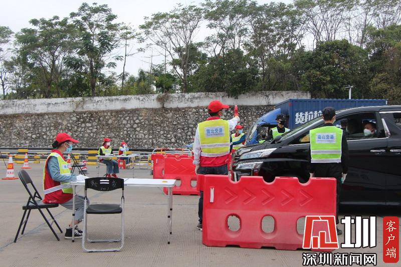 見圳客戶端·深圳新聞網(wǎng)2020年2月3日訊(見圳客戶端、深圳新聞網(wǎng)記者吳梓欣)眼下正值返深高峰期,為控制疫情影響,近日,深圳交通運輸局在城市出入要道都設(shè)置了檢疫區(qū)?!按蜷_車窗,帶好口罩,測量體溫……”2月2日,記者在南頭收費站看到交警正為過往車輛及人員測量體溫,在身著“南山交通”黃馬甲的交通檢查隊伍中還有一抹熟悉的紅色——深圳義工。