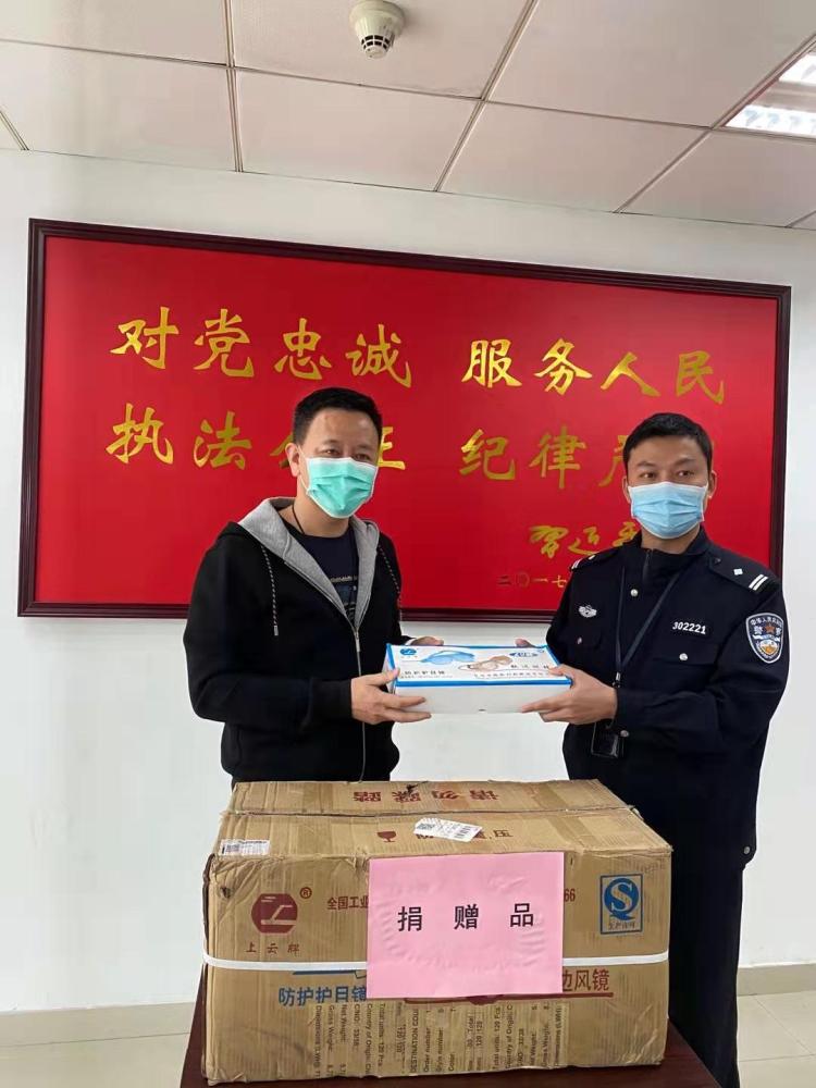向深圳大學總醫(yī)院捐贈消毒藥水和口罩。