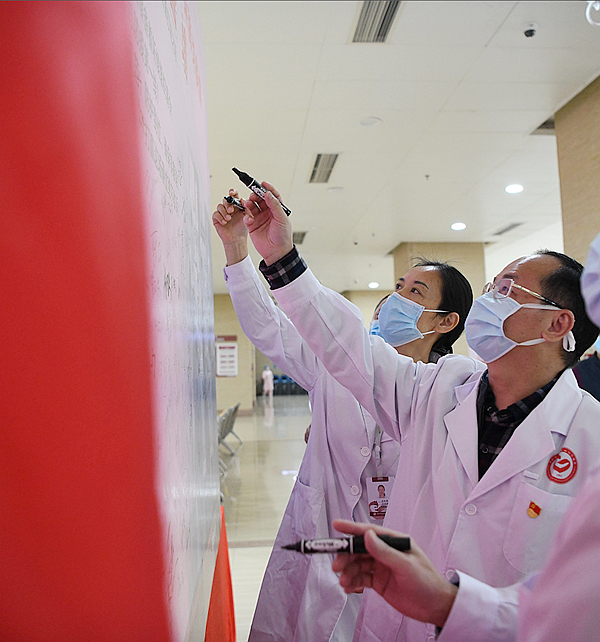 他們科室還有一名醫(yī)生曹憲振,是剛?cè)朦h兩個月的黨員,在得知需要人員到區(qū)疾控中心支援冠狀病毒核酸檢測工作后,第一個寫好《請戰(zhàn)書》,并如愿被派往區(qū)疾控實(shí)驗(yàn)室支援。他說:“現(xiàn)在疫情嚴(yán)峻,作為一名黨員,我應(yīng)該義無反顧支援疫情防控工作,為國家和社會做貢獻(xiàn)!”在這次戰(zhàn)役中,中心實(shí)驗(yàn)室有11名黨員報名參加新冠病毒檢測,他們用實(shí)際行動踐行了共產(chǎn)黨員的誓言,做了一名與病毒最接近的人。