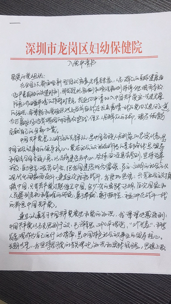 疫情來時,龍崗區(qū)婦幼保健院一醫(yī)生志愿加入中國共產(chǎn)黨