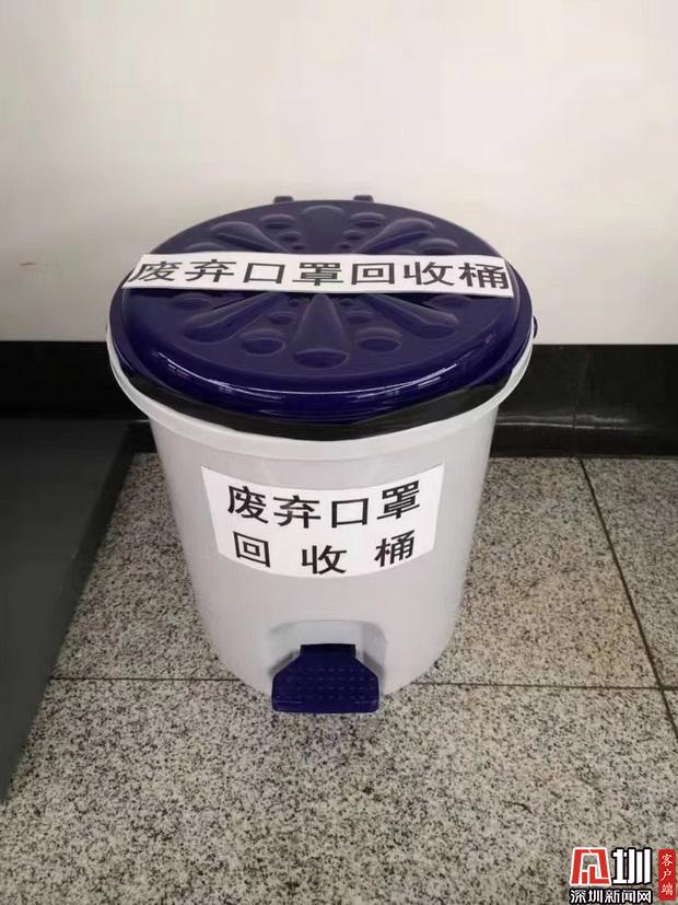 深圳地鐵設(shè)置廢棄口罩回收箱。