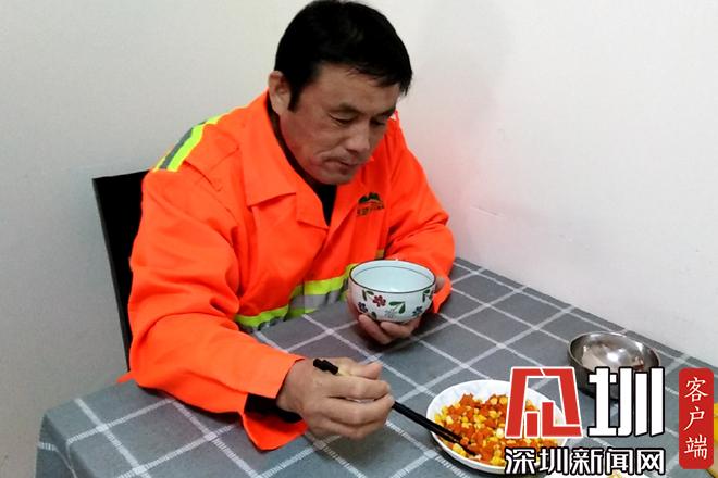 胡蘿卜丁炒玉米,再加一碟土豆絲下飯,這就是黃學志的午餐。黃學志說,他有幾年沒回老家了,本來計劃春節(jié)回去過年,順便帶老伴看病,沒想到疫情越來越嚴重,于是就打消了這個念頭。疫情發(fā)生以來,除了日常工作,他還要負責為值班同事普及疫情防控知識的任務。從早上7點半到12點半,下午1點半到5點半,他每天在沙頭角7個垃圾轉運站、18個公廁來回奔走,給同事配送口罩及消毒用品,檢查他們的身體健康情況?!艾F(xiàn)在是疫情防控關鍵期,我們也希望為防控工作貢獻出來自環(huán)衛(wèi)清潔行業(yè)的一份力量。”黃學志說。(見圳客戶端、深圳新聞網(wǎng)記者鄧雪婷)