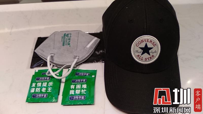 復(fù)工佩戴的物品:口罩、一次性手套、酒精消毒片、一支帶筆蓋的筆、工牌、手機(jī)都套塑料袋