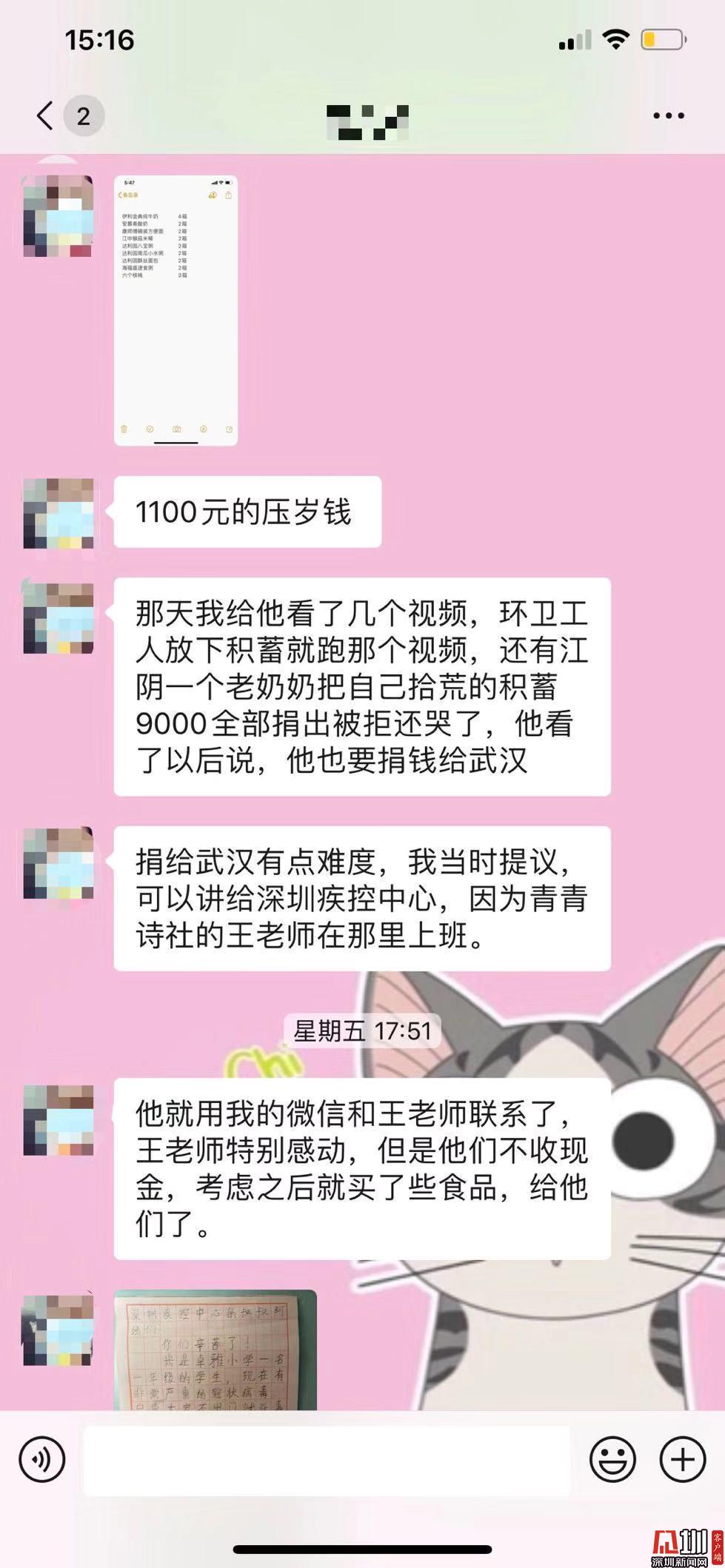 在肆虐的疫情面前,一名7歲的小男孩不惜動(dòng)用了今年的全部壓歲錢1100元,購買食品捐贈(zèng)給深圳市疾病預(yù)防控制中心。