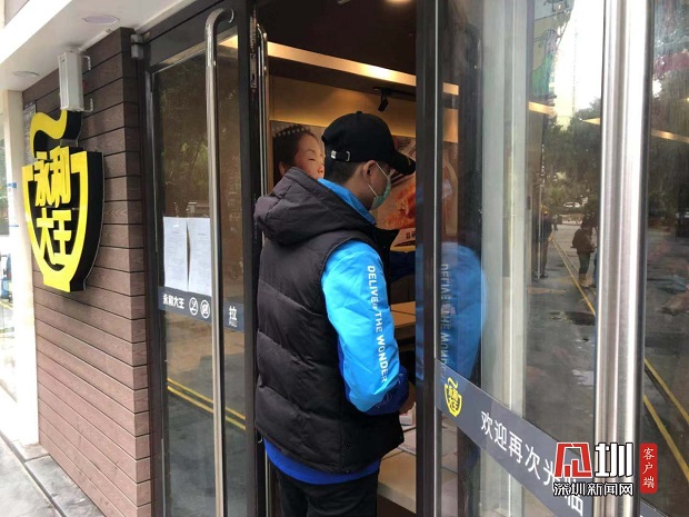 “店內(nèi)員工都是留深人員為主,每個(gè)班次都會(huì)測(cè)兩次體溫,要求員工佩戴口罩并手部消毒后才能上崗?,F(xiàn)場(chǎng)消毒清潔時(shí)具備有專門的消毒粉,會(huì)每4小時(shí)進(jìn)行一次清潔消毒。”永和大王工作人員向記者介紹道?,F(xiàn)場(chǎng)門口處陸續(xù)有外賣小哥過來店前領(lǐng)取外賣,記者看到,外賣人員前來領(lǐng)取外賣前都要配合店家進(jìn)行體溫測(cè)量,外賣餐盒都以獨(dú)立餐盒包裝的方式給到外賣小哥手上,以保證食物衛(wèi)生安全干凈。