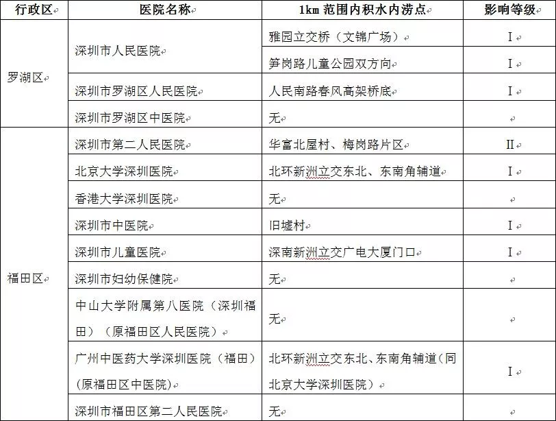 根據(jù)2019年度全市積水內(nèi)澇報(bào)送情況,深圳市水務(wù)局初步梳理出全市49家發(fā)熱門診(含1家新型冠狀病毒感染肺炎定點(diǎn)救治醫(yī)院)周邊積水內(nèi)澇點(diǎn)29處,并結(jié)合積水內(nèi)澇嚴(yán)重情況分為Ⅰ、Ⅱ、Ⅲ級。