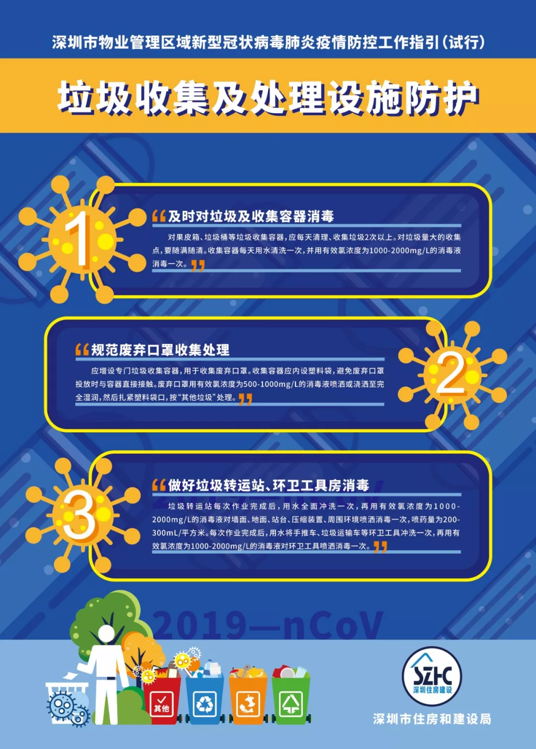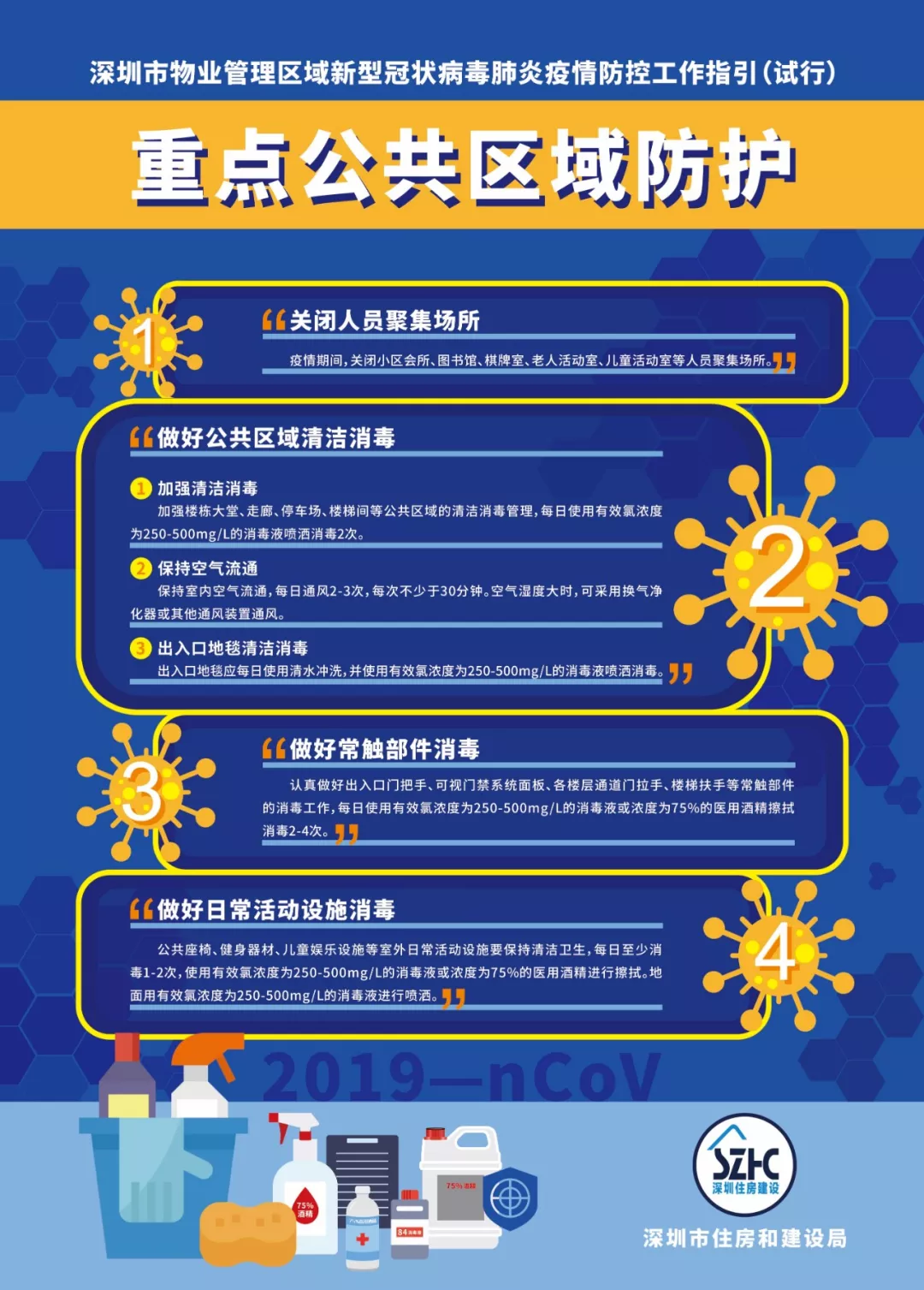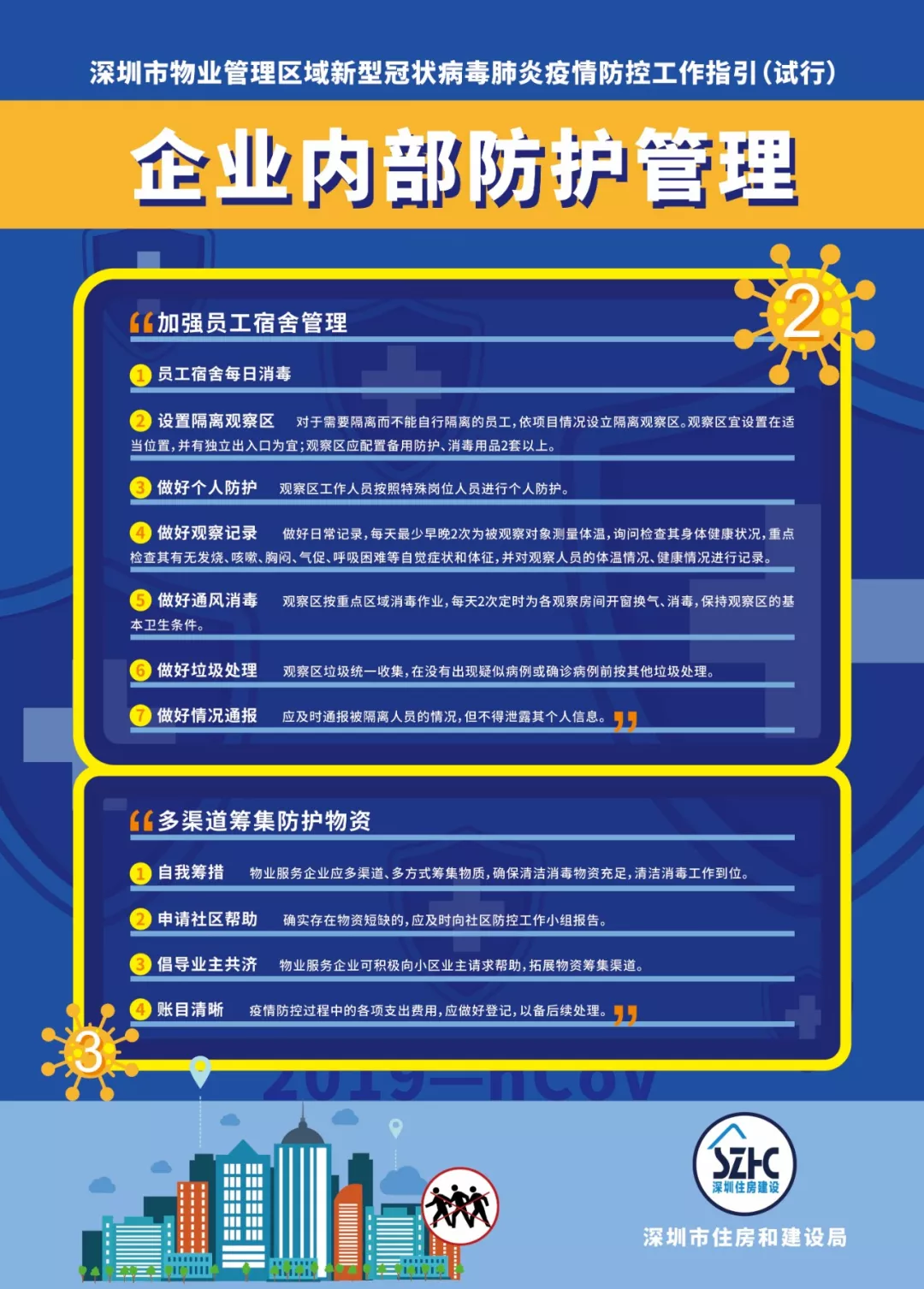 為進(jìn)一步做好物業(yè)管理區(qū)域新型冠狀病毒肺炎疫情防控工作,依據(jù)《廣東省物業(yè)管理區(qū)域新型冠狀病毒感染的肺炎疫情防控工作指引(試行)》《深圳市新型冠狀病毒感染的肺炎疫情防控指揮部印發(fā)關(guān)于建立健全社區(qū)聯(lián)防聯(lián)控機制的若干措施的通知》《深圳市新型冠狀病毒感染的肺炎疫情防控指揮部辦公室社區(qū)小區(qū)組工作方案》《深圳市新型冠狀病毒感染的肺炎疫情防控指揮部辦公室關(guān)于印發(fā)住宅小區(qū)和城中村全面實施人員通行認(rèn)證管理的工作指引的通知》等文件,結(jié)合當(dāng)前實際,市住房建設(shè)局編制了《深圳市物業(yè)管理區(qū)域新型冠狀病毒肺炎疫情防控工作指引(試行)》,現(xiàn)印發(fā)給你們,請參照執(zhí)行。
