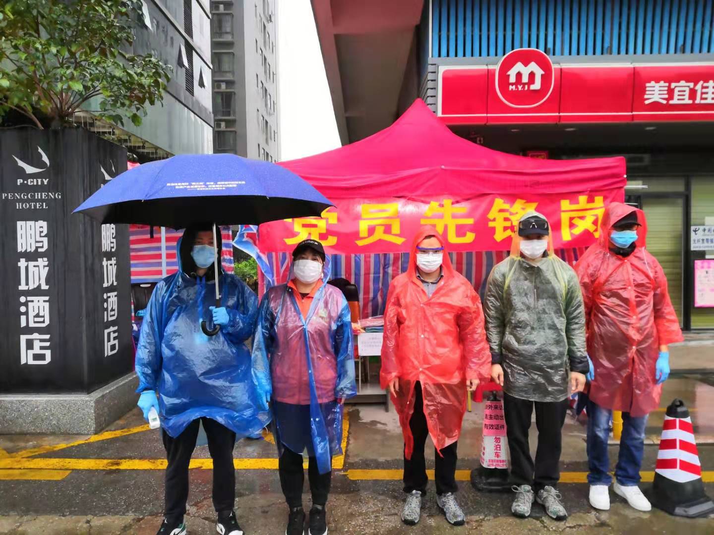 在龍華區(qū)福城街道茜坑社區(qū)的黨員先鋒崗上,工作人員和志愿者只有一襲最簡(jiǎn)單的一次性雨衣,卻依然堅(jiān)守在崗位上。(見圳客戶端、深圳新聞網(wǎng)記者沈婷)