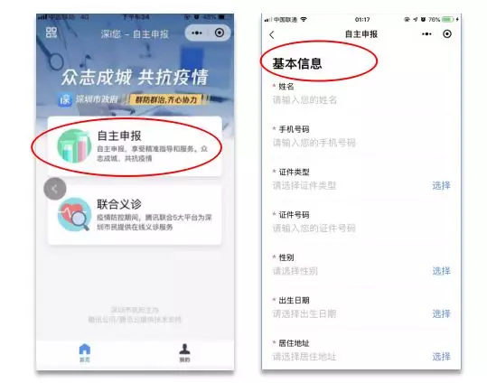 第一步:通過(guò)微信搜索“深i您-自主申報(bào)”小程序、i深圳公眾號(hào)-抗擊疫情-深i您自主申報(bào)、“i深圳”APP疫情防控服務(wù)專(zhuān)區(qū)入口等多途徑進(jìn)入自主申報(bào)平臺(tái),請(qǐng)根據(jù)實(shí)際情況填寫(xiě)基本信息、人員類(lèi)型、是否居家隔離、居住屬性、是否有如下癥狀、其他等信息,其中帶*號(hào)和有必選字樣的為必填項(xiàng),請(qǐng)按照平臺(tái)提示填寫(xiě)。