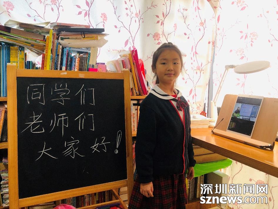 早早地,小妞要我在小黑板上寫下對老師們對同學(xué)們的問候。還記得昨晚臨睡前,她興奮地說:“明天就能和老師和同學(xué)們在網(wǎng)上相見,太開心了?!?/p>