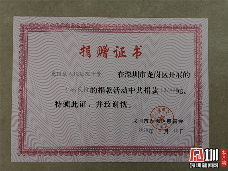 愛暖鵬城!龍崗區(qū)法院募集防疫善款10萬多元