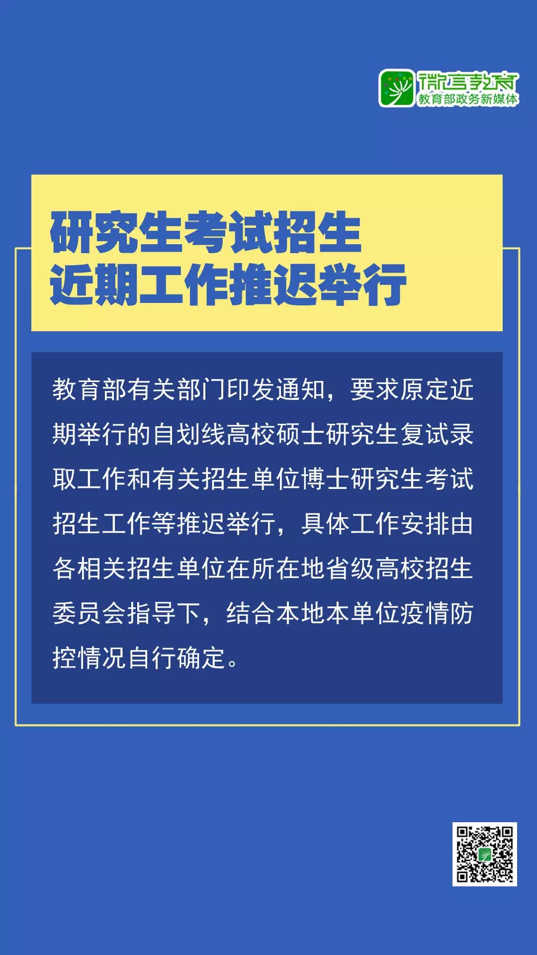請各市迅速通知本轄區(qū)內(nèi)的中學和考生,提醒考生及時關注擬報考院校的官網(wǎng)和官微公告。請各??伎键c及時通知在我省設點組織藝術(shù)類專業(yè)??嫉母咝?,并做好考試調(diào)整的解釋引導。請各有關高校及時在官網(wǎng)和官微對相關特殊類型考試工作安排調(diào)整發(fā)布公告,并及時通知到已報名考生。各??伎键c和有關高校要加強協(xié)調(diào)溝通,做好通知安撫考生以及后續(xù)相關工作。