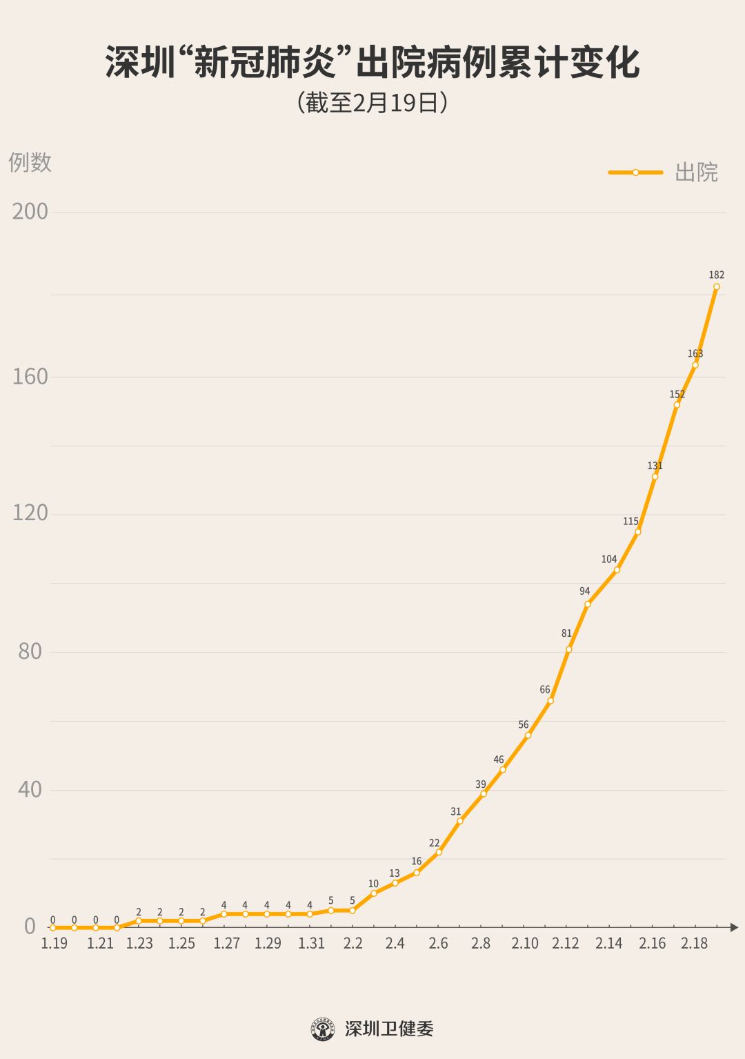 2月19日下午,經(jīng)專(zhuān)家組會(huì)診,深圳再有19名新型冠狀病毒肺炎確診患者出院,累計(jì)達(dá)182人,連續(xù)17天有人出院。