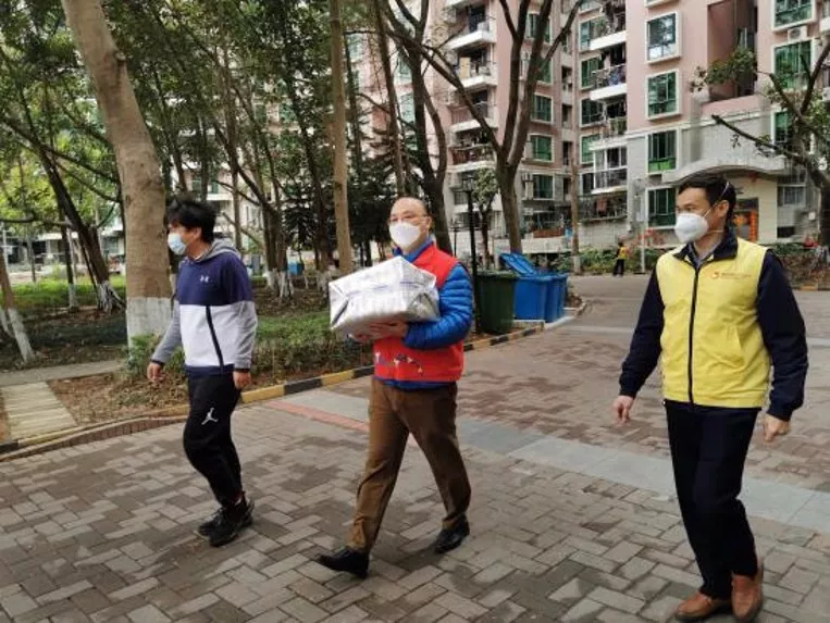 新秀社區(qū)黨員志愿者為居家醫(yī)學觀察的家庭配送食品物資(深圳晚報記者楊少昆攝)