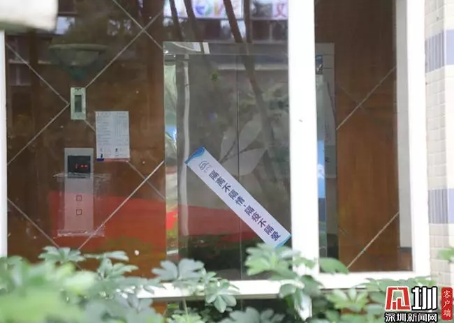 深圳南山一小區(qū)單元出入口,隔著玻璃看去,電梯上的封條寫著“隔離不隔情、隔疫不隔愛”的溫馨提示。