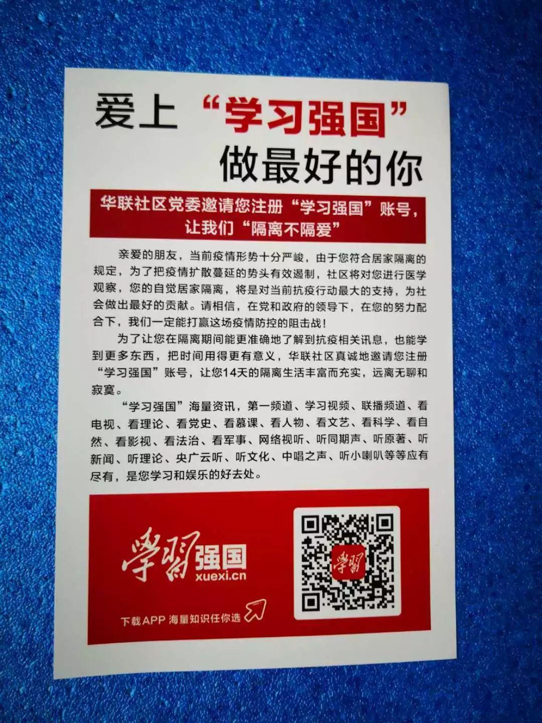邀請(qǐng)隔離居民注冊(cè)“學(xué)習(xí)強(qiáng)國(guó)”