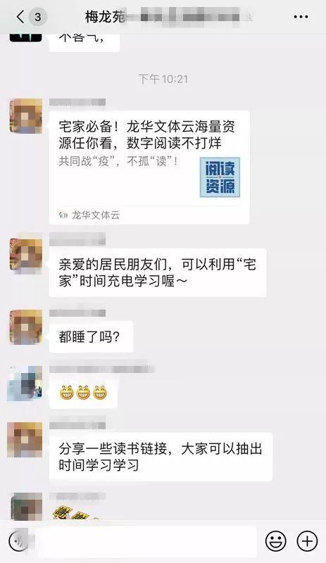 為緩解居家隔離人員情緒,豐富其精神文化活動(dòng),龍華街道還引導(dǎo)居民使用“龍華文體云”提供的免費(fèi)數(shù)字資源庫(kù)進(jìn)行線上學(xué)習(xí),利用“宅家”時(shí)間“充電”,滿足居家閱讀需求,豐富精神世界,幫助居民充實(shí)快樂(lè)宅在家。