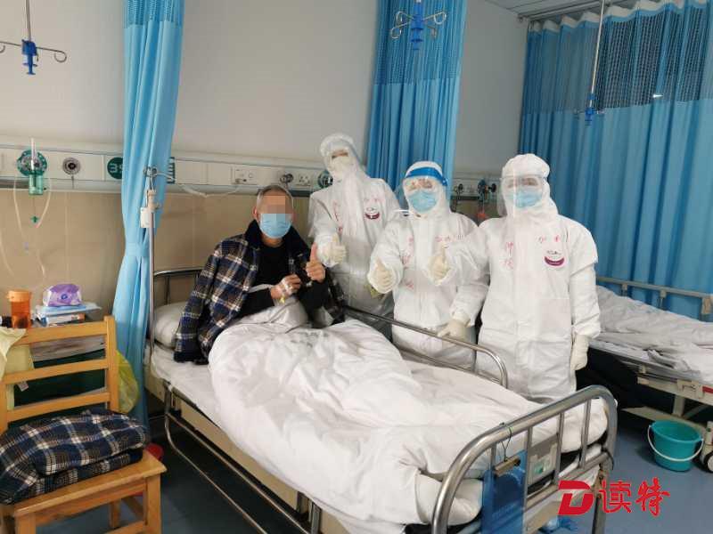 深圳醫(yī)療隊(duì)員與患者合影,互相鼓勵(lì)。