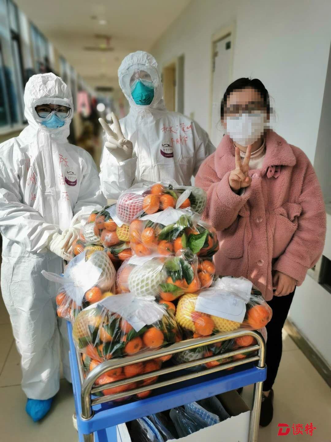深圳醫(yī)療隊(duì)員為患者發(fā)放沙糖桔與蘋果。水果也是從廣東遠(yuǎn)道而來(lái),是廣東愛(ài)心人士捐給深圳醫(yī)療隊(duì)的,隊(duì)員們分享給患者朋友。