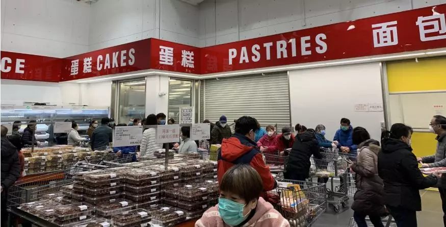 ▲這兩天,位于上海閔行區(qū)的Costco超市里,購物的人們又排起了長龍。
