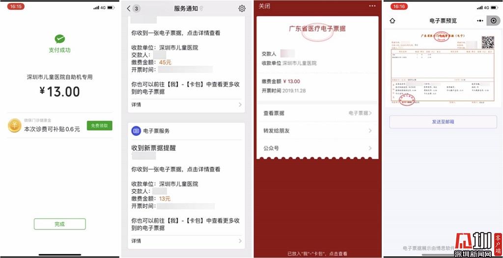 見圳客戶端·深圳新聞網(wǎng)2020年2月24日訊(見圳客戶端、深圳新聞網(wǎng)記者 陳婕)減少接觸是對抗擊疫情的最大支持。日前,微信聯(lián)合博思軟件在深圳市中醫(yī)院、深圳市兒童醫(yī)院、深圳市第二人民醫(yī)院、深圳市人民醫(yī)院、北京大學深圳醫(yī)院等醫(yī)院首期上線了醫(yī)療電子票據(jù),為患者提供“就診繳費后通過微信領(lǐng)取電子票據(jù)”的服務,減少接觸人群聚集及紙質(zhì)票據(jù)交叉感染的風險。