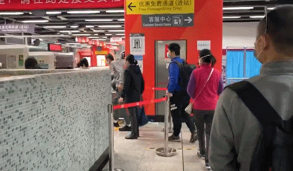 大家隔著安全距離,有序排隊(duì)進(jìn)站