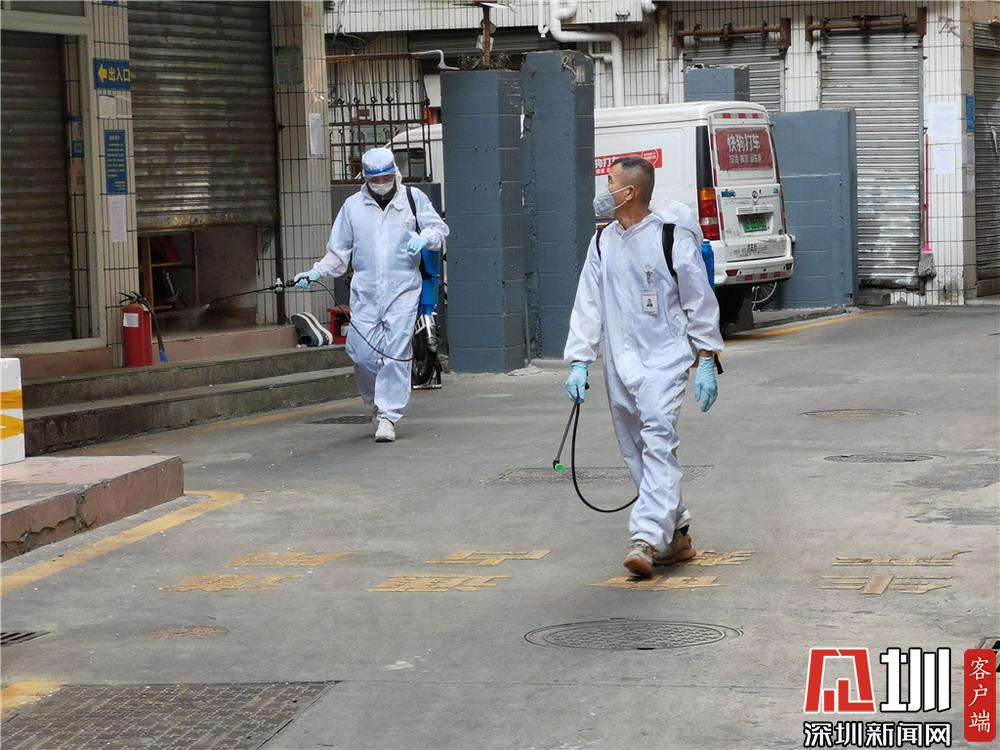 城中村內(nèi),正在進(jìn)行消毒作業(yè)的工作人員。