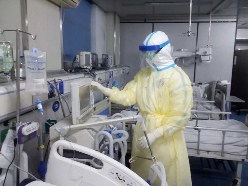 醫(yī)生在病房內照顧病人